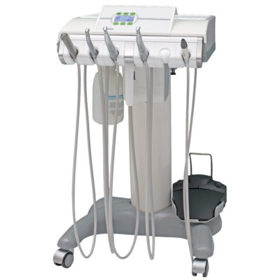 Ablage für 2 Normtrays. Digital-Anzeige, alle Funktionen werden über den Fußanlasser gesteuert bzw. abgerufen. Spraywasserheizung im Gerätekörper, Sprayeinrichtung für alle Antriebe rücksaugfrei, Spanbläsereinrichtung für alle Turbinenund Motoreinrichtungen, 6 Ablageköcher mit herausnehmbaren, autoklavierbaren Köchereinsätzen. Zentrale Lichtversorgung für Antriebe. Versorgungsschlauch 2,5 m. RKI-Spülung.